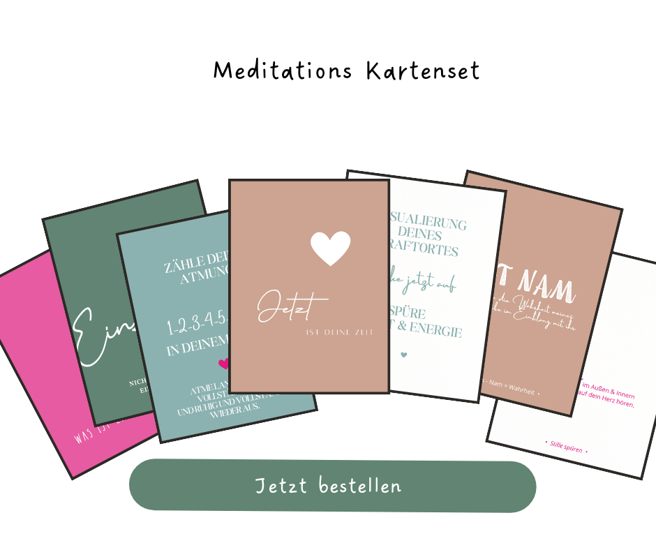 Das Meditationskartenset lädt dich ein, kurze Momente der Ruhe ganz einfach in deinen Alltag zu holen. Jede Karte schenkt dir eine sanfte Inspiration, eine kleine Übung oder einen achtsamen Impuls, der dich dabei unterstützt, bei dir selbst anzukommen und inneren Frieden zu finden. Ob morgens für einen bewussten Start in den Tag oder zwischendurch als kleine Pause – die Karten helfen dir, dich zu zentrieren, tief durchzuatmen und mehr Gelassenheit in dein Leben einzuladen.